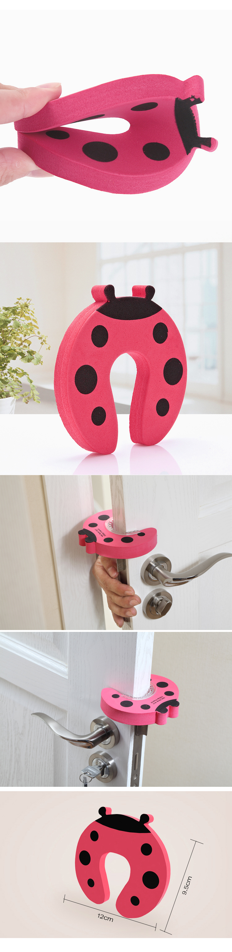 A door swinging closed can be a hazard to a child's fingers. These handy finger guards fit between the door and molding to prevent doors from slamming closed, protecting children from painful and serious finger injuries.